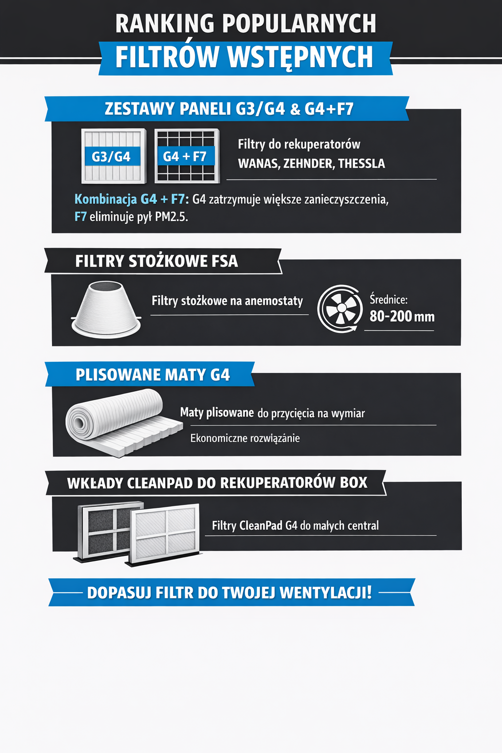 Filtr wstępny chroni wymiennik ciepła i drogie filtry dokładne przed dużymi cząstkami zanieczyszczeń. Podstawowy...